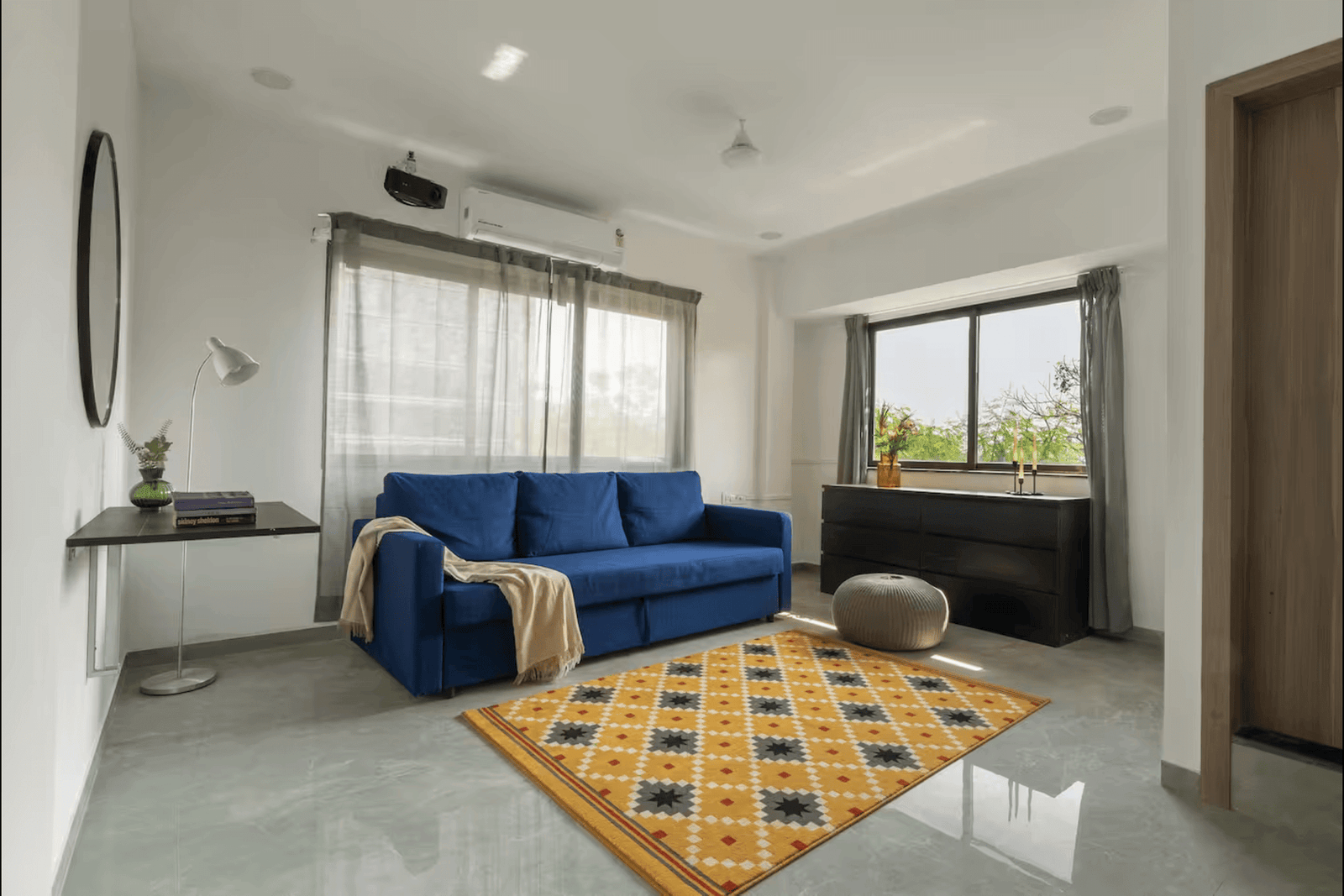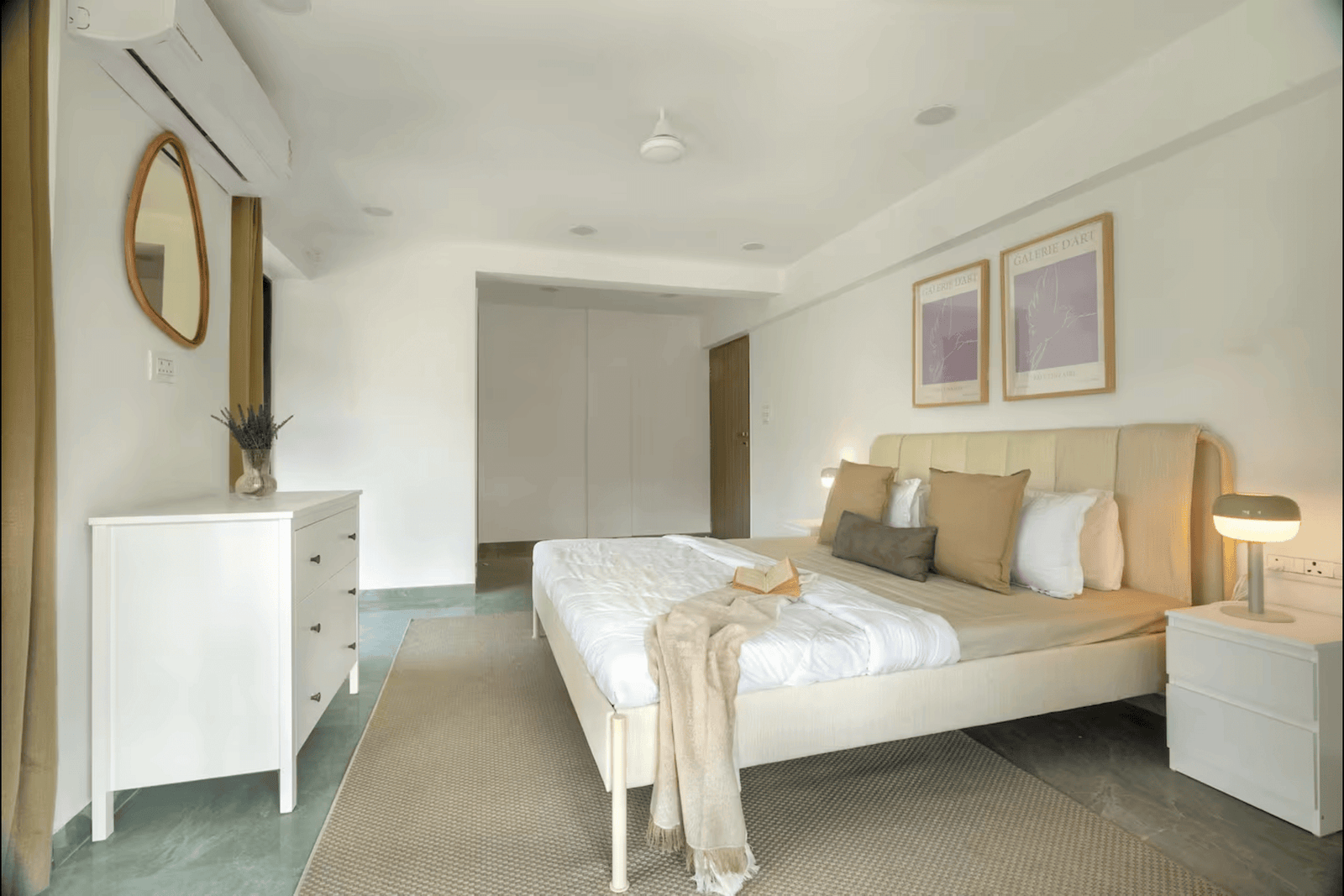 Enjoy a delightful stay in this rustic and peaceful 2 bedrooms apartment. The bedrooms are equipped with AC, and high-speed Wifi to make your stay comfortable.